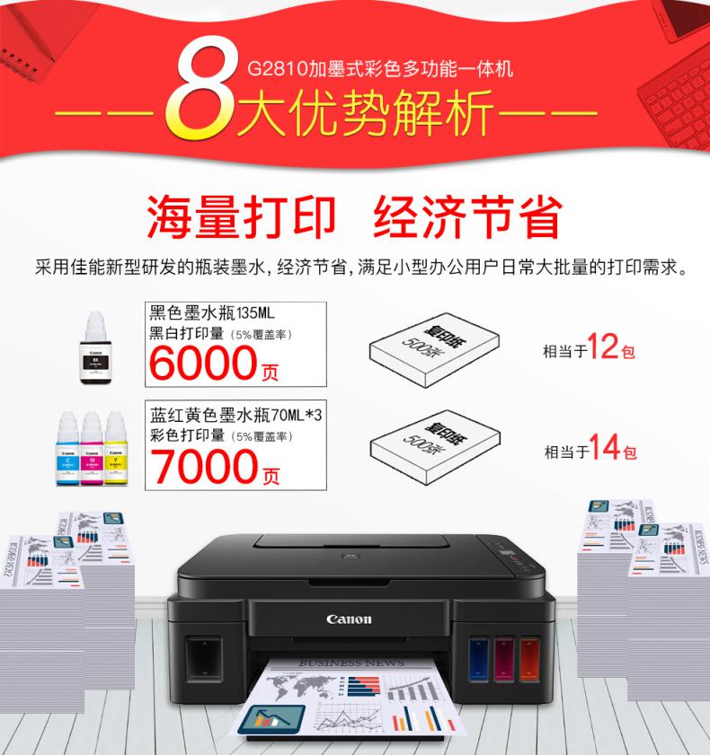 佳能(Canon) G2810 连供彩色喷墨多功能一体机 A4(单位:台) 黑色