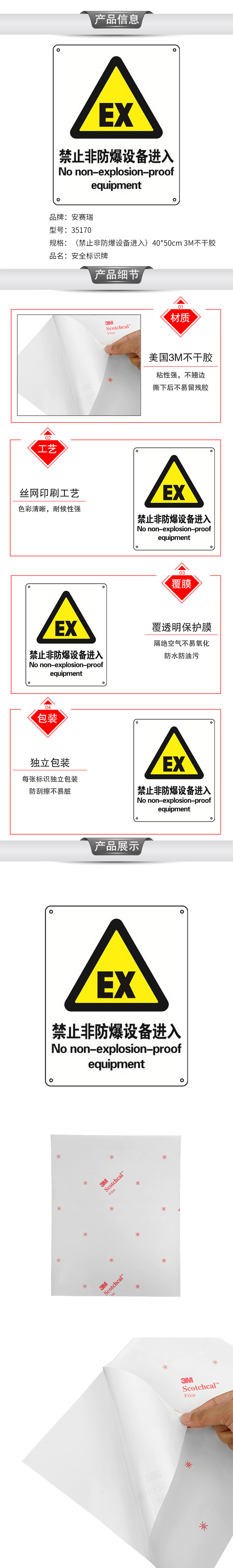 商品名称 3M不干胶安全标识牌 禁止非防爆设备进入