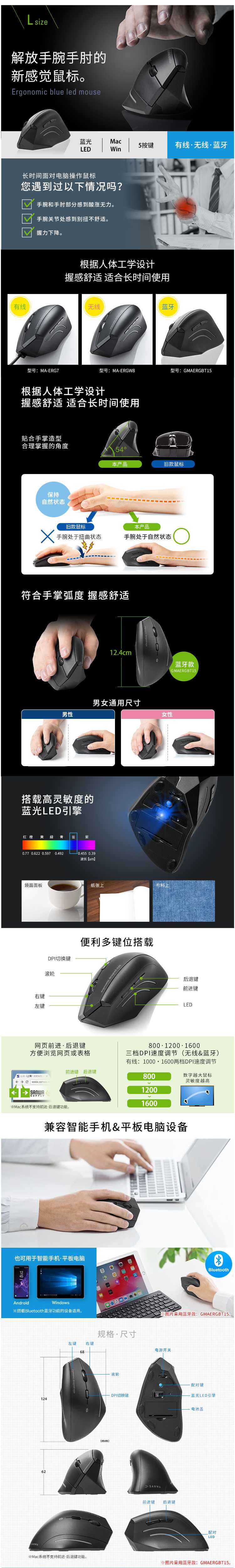 山业 MA-ERGW8 人体工学 蓝光LED无线鼠标(单位:个) 黑色