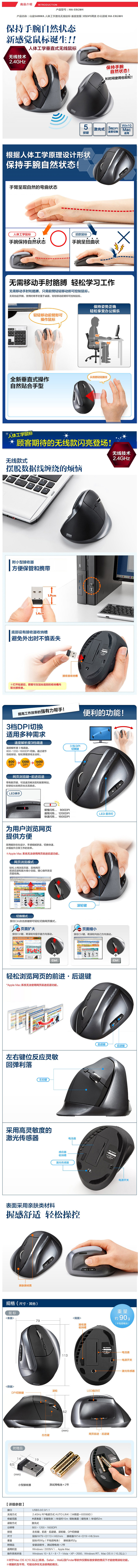 山业(SANWA) MA-ERGW4 人体工学 无线鼠标 黑色