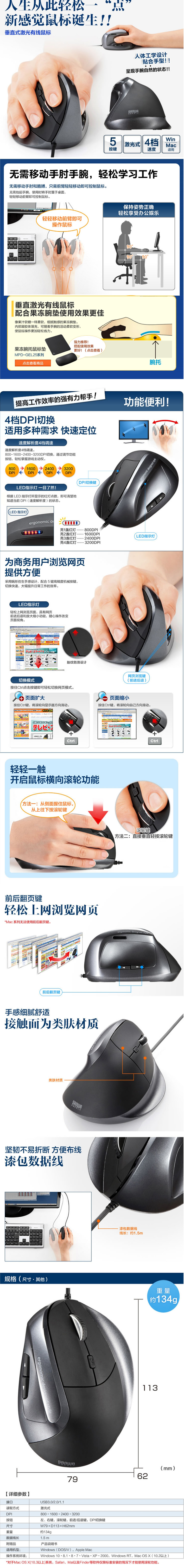 山业(SANWA) MA-ERG3 人体工学 有线鼠标 黑色