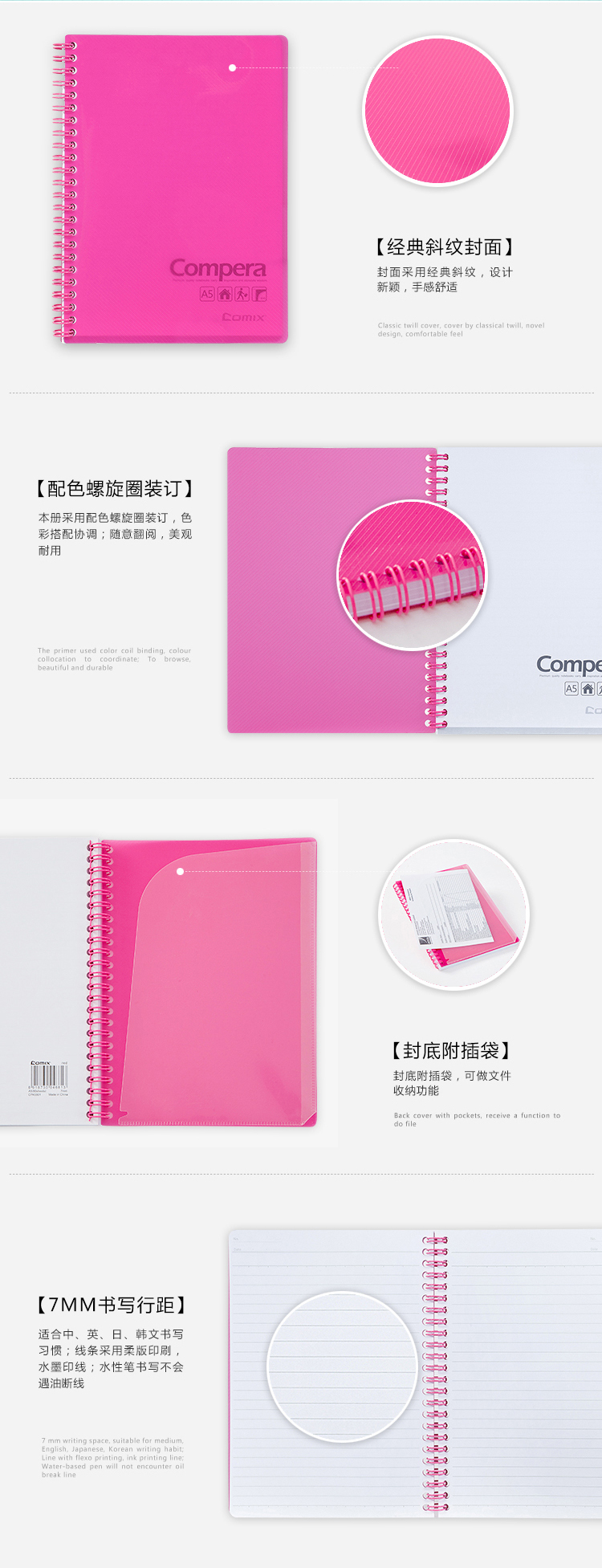 齐心 CPA5801 Compera 双螺旋PP面本 A5 80张