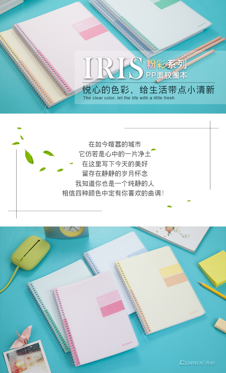 名称 齐心 C5602 粉彩系列PP面胶圈本 A5 80张