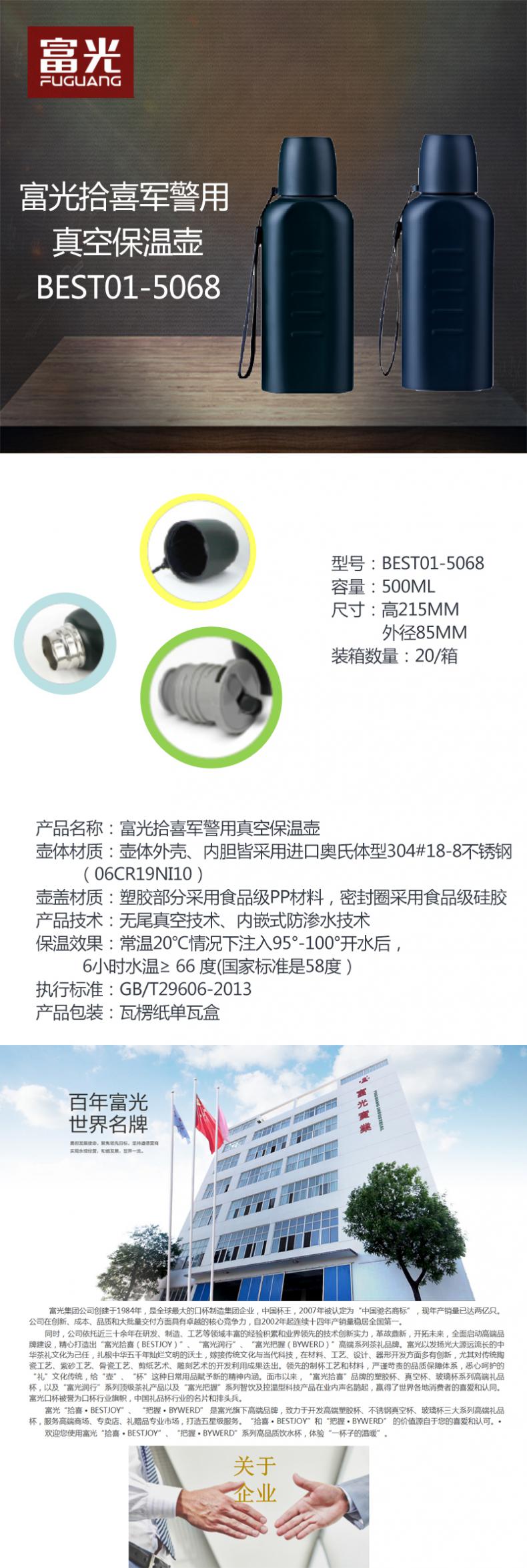 富光 拾喜军警用真空保温壶 BEST01-5068 500ml 蓝色