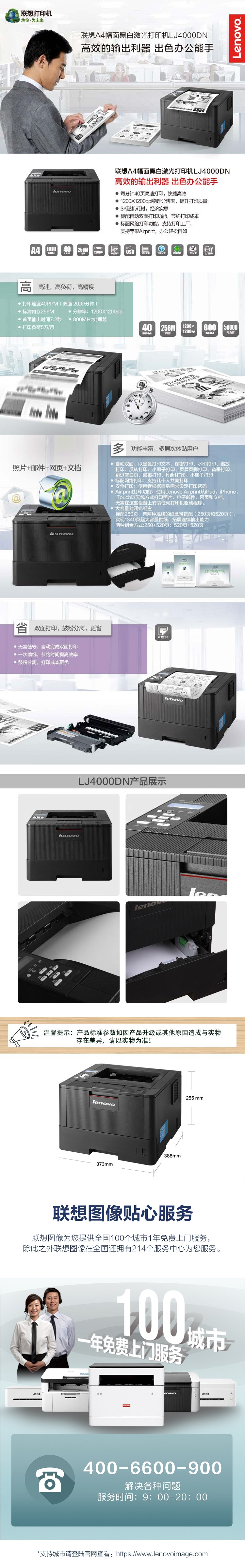 联想(Lenovo) LJ4000DN 黑白双面激光打印机 A4幅面 (单位:台) 黑色