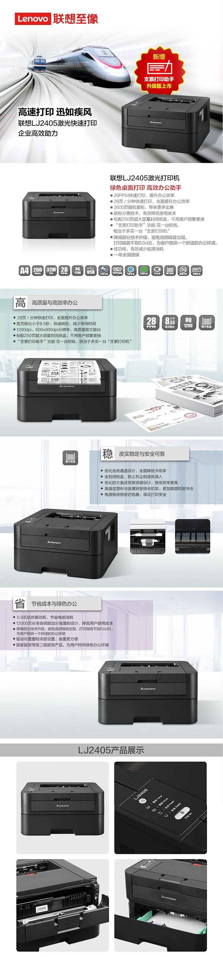 联想(Lenovo) LJ2405 黑白激光打印机 A4幅面 (单位:台)