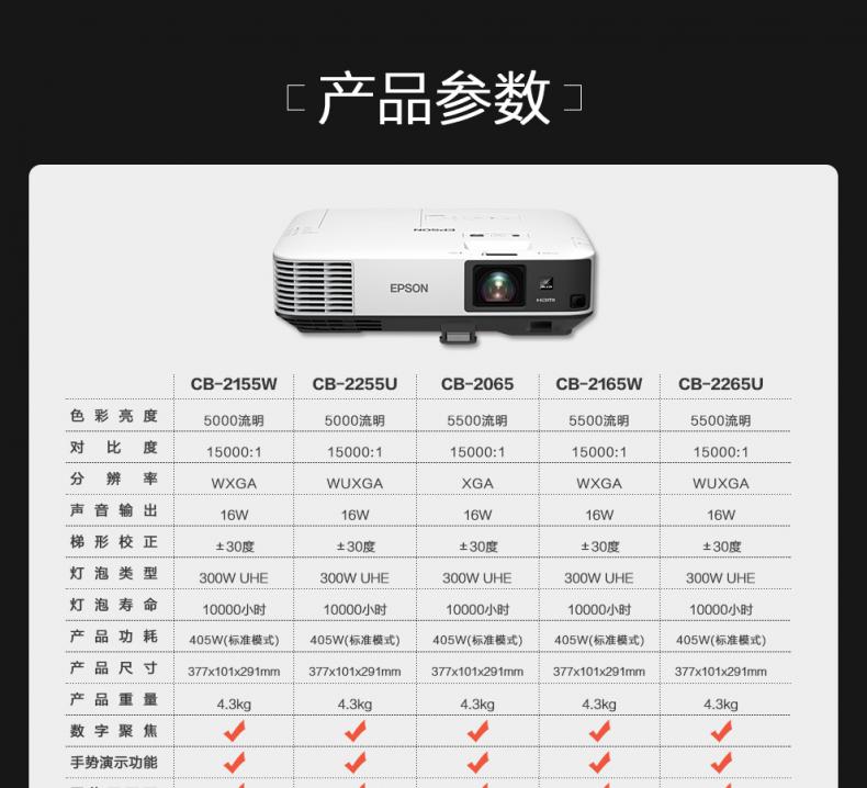 爱普生(EPSON) CB-2265U 投影机 官方标配(单位:台)