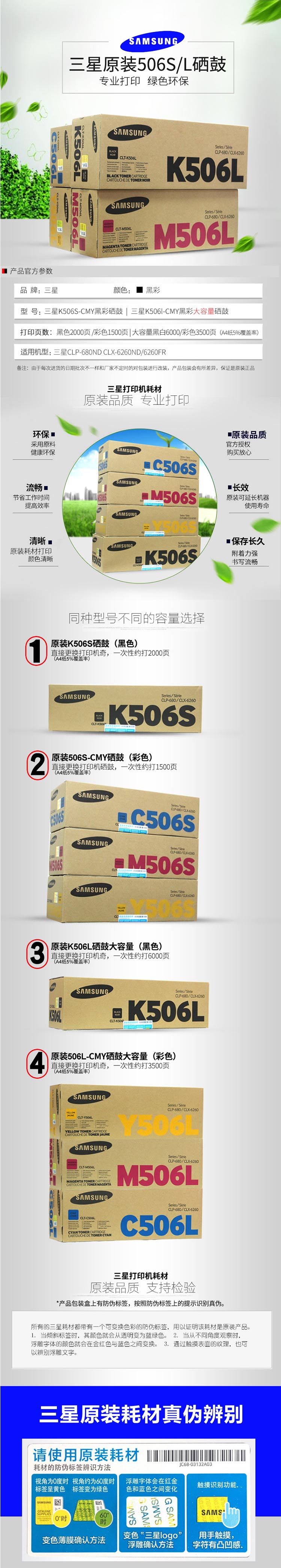 三星 墨粉盒 CLT-506S 青色 适用于680ND 6260ND/FR 三星 CLT-C506S 硒鼓