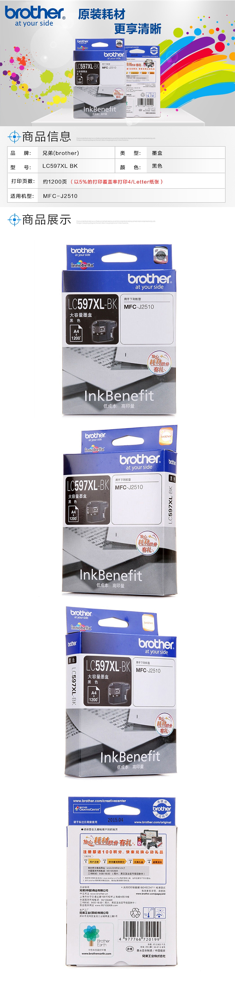 兄弟打印机墨盒LC597XL 1200页 适用于兄弟MFC-J2510