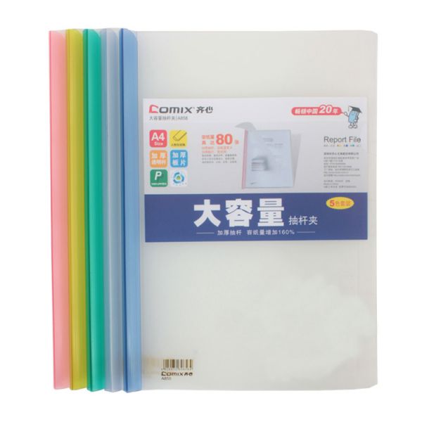 齐心(Comix) 抽杆文件夹 A858 A4 大容量加厚磨砂 10/80/160 蓝色