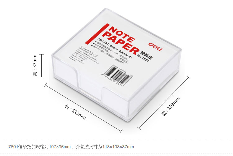 得力 7601 便条纸带盒107*96mm 白色 300张/盒