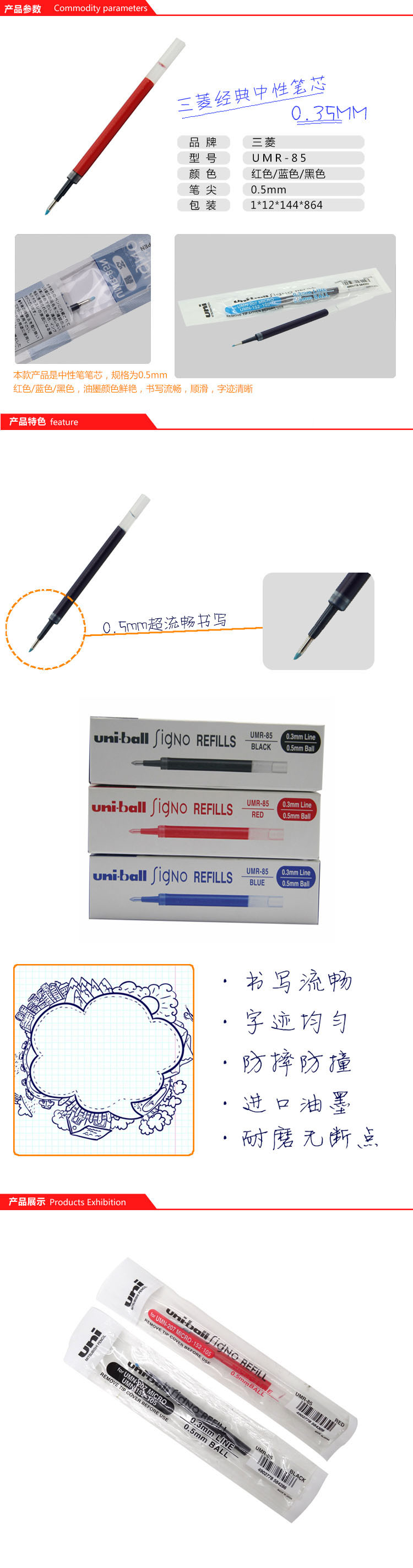 三菱(Uni) 签字笔替芯UMR-85 黑色 0.5mm