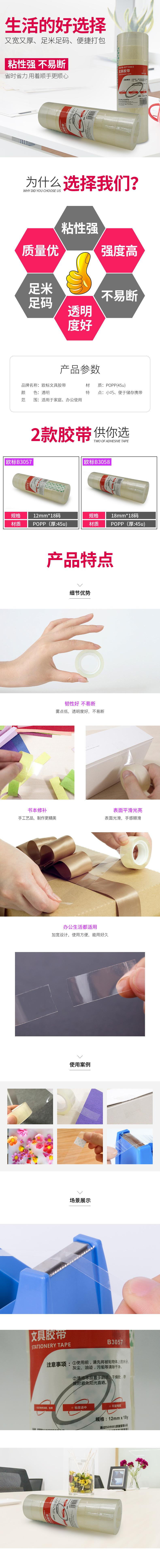 欧标 文具胶带 B3057 透明 12mm*18y
