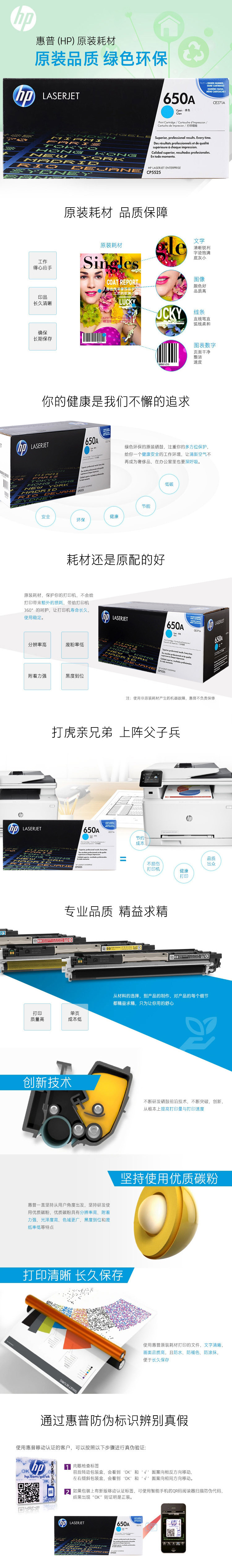 惠普(HP) 彩色激光打印机硒鼓 CE271A 650A 青色 适用机型 Color LaserJet CP5525 系列打印机