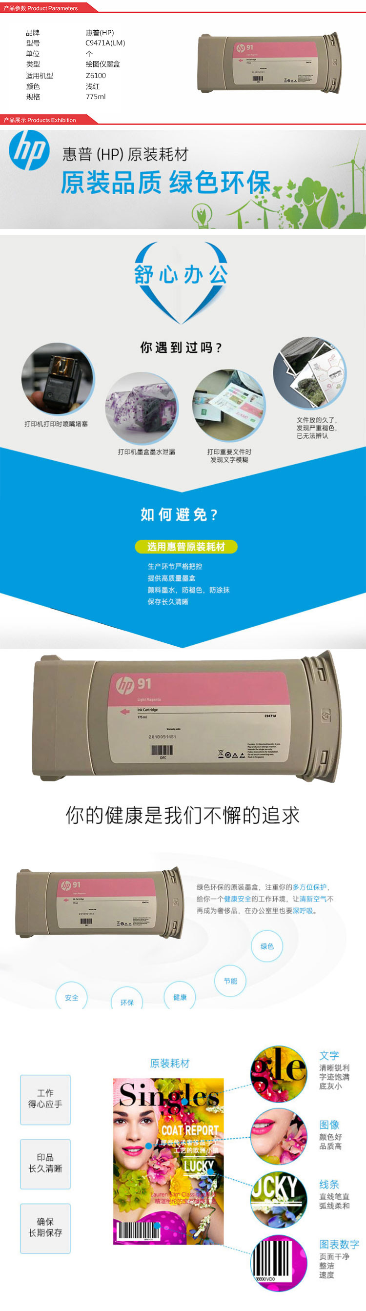 惠普(HP) 绘图仪墨盒 C9471A(LM) 浅红 Z6100
