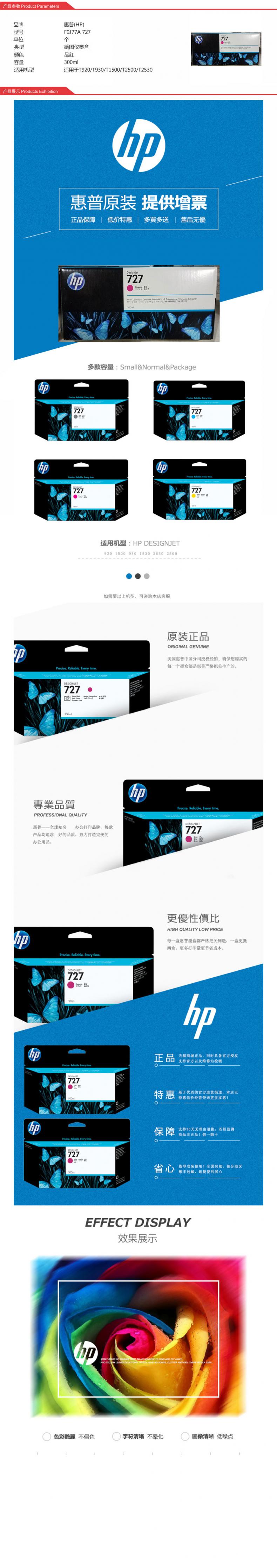 惠普 F9J77A 727 绘图仪墨盒(单位:个) 品红