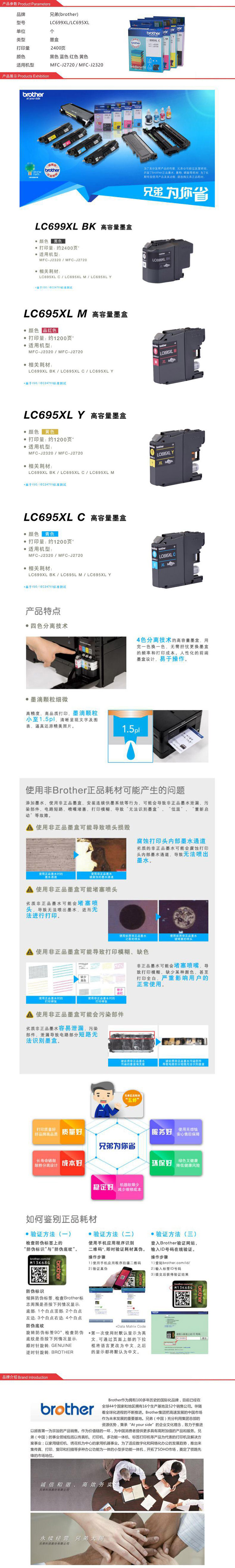 兄弟(brother) 打印机墨盒 LC695XL-C 蓝色 适用于兄弟(brother)MFC-J2320/MFC-J2720
