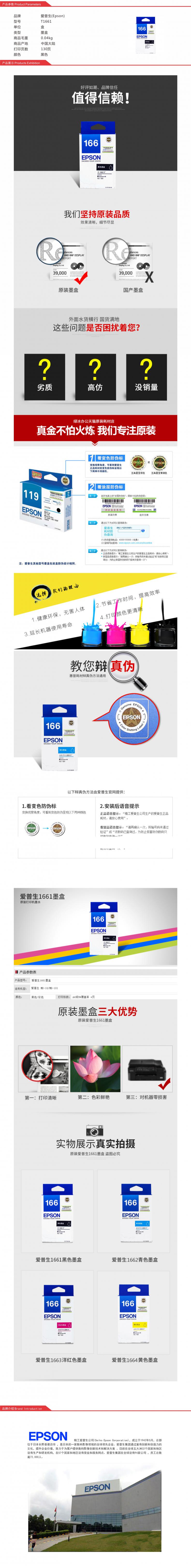 爱普生(Epson) 打印机墨盒 T1661 黑色