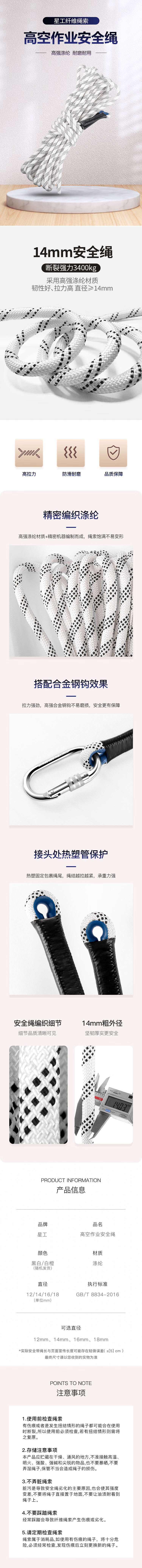 星工(XINGGONG) XGAQS-1 安全绳 14mm*10m含O型小钩*2 (单位:米) 2根起订