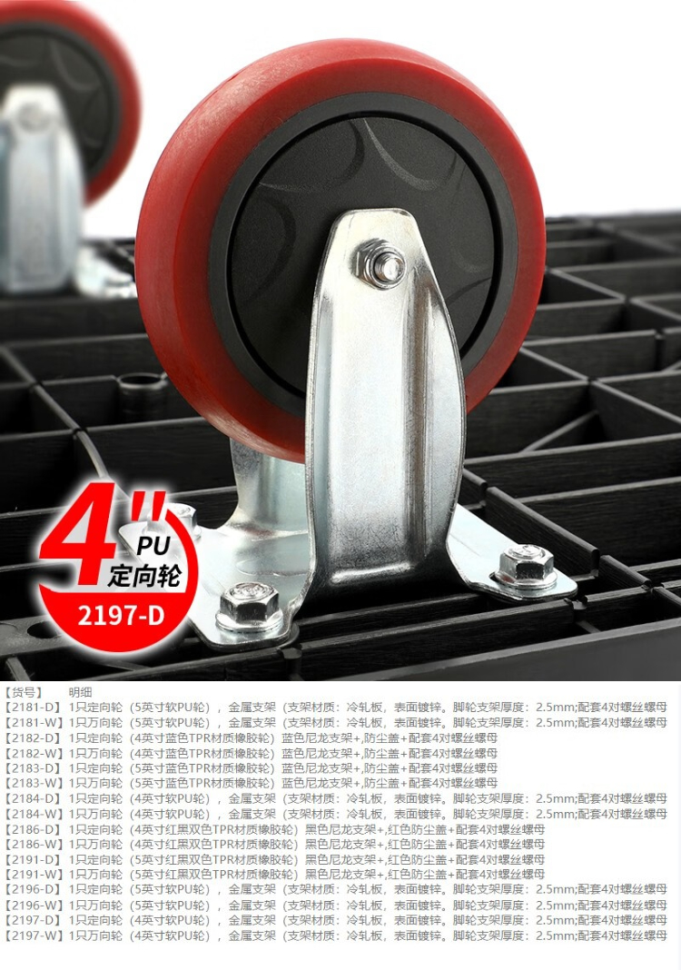 赛拓(SANTO) 2197-D 双色PU静音轮 4英寸定向轮 (单位:只) 红黑
