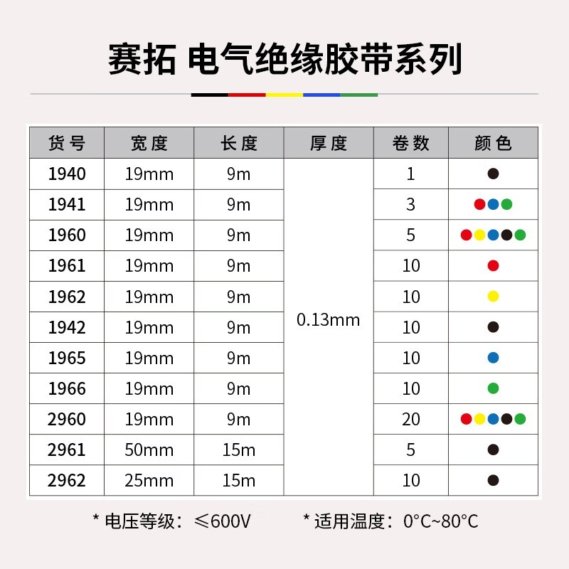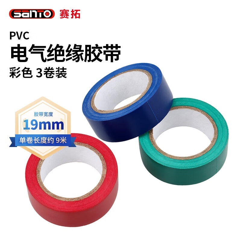 赛拓(SANTO) 1941 PVC电气绝缘胶带 19mm*9m 3卷/组 (单位:组) 三色