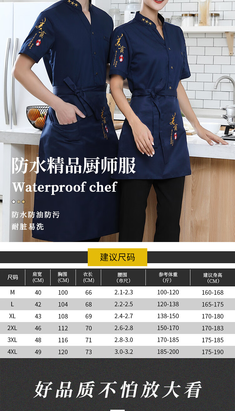 谋福 中国大厨 厨房工作服套装 长袖上衣+围裙 3XL (单位:套) 白色