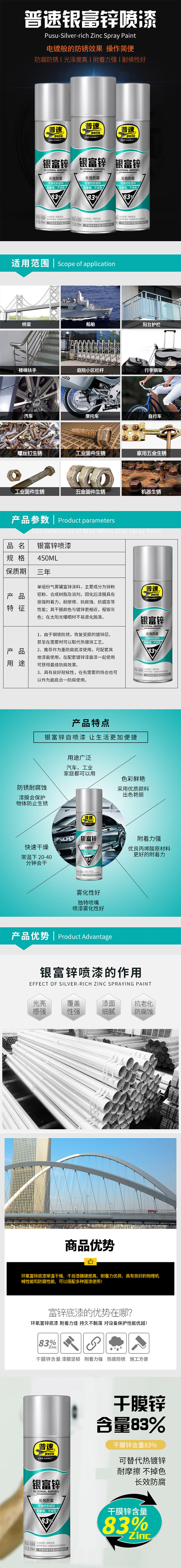 普速 PUSU4508 银富锌喷漆 450ml (单位:罐) 锌含量83%