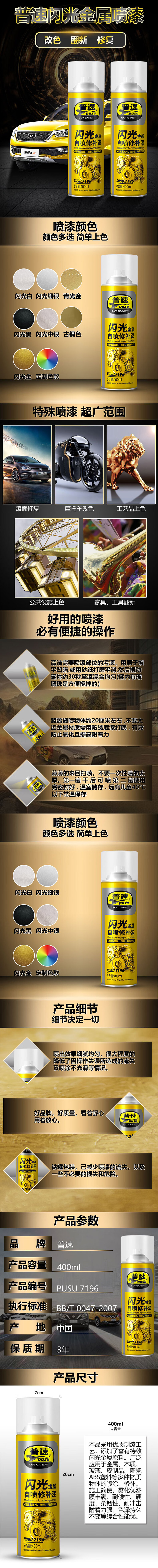 普速 PUSU7196-1350 金属闪光喷漆 1350# 400ml (单位:罐) 闪光白色