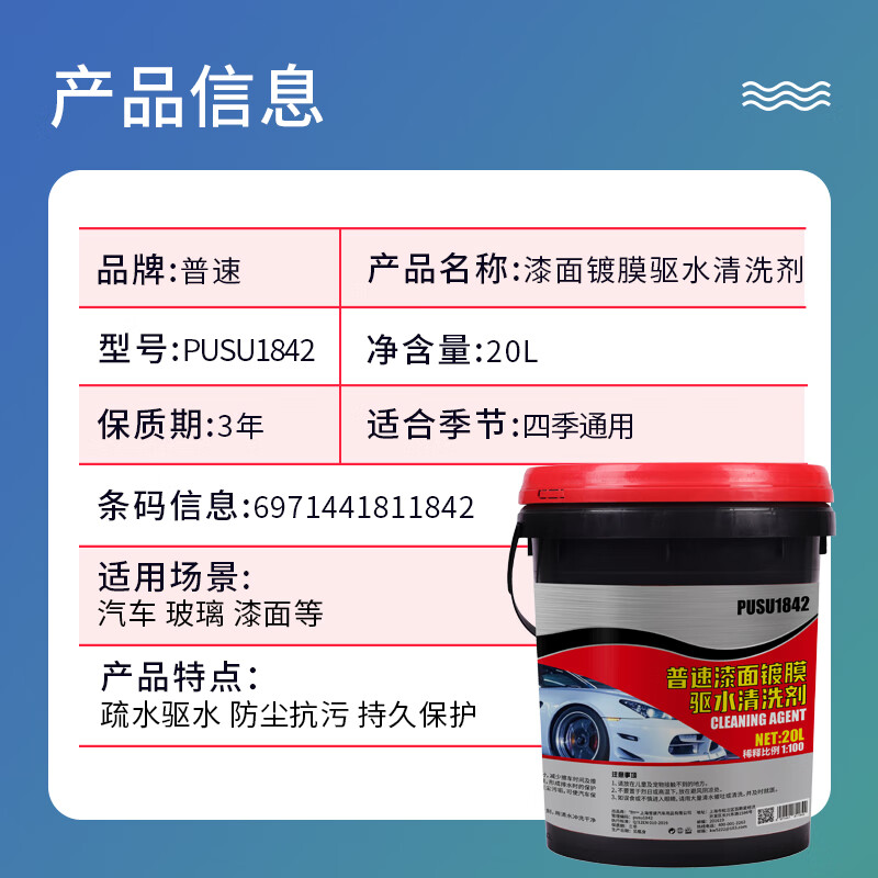 普速 PUSU1842 漆面镀膜+驱水清洗剂 20L (单位:桶)