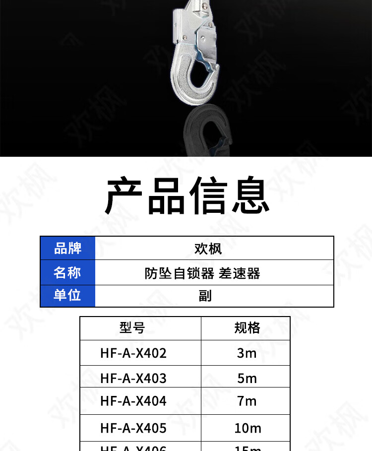 欢枫 HF-A-X406 防坠自锁器 差速器 15m (单位:副)