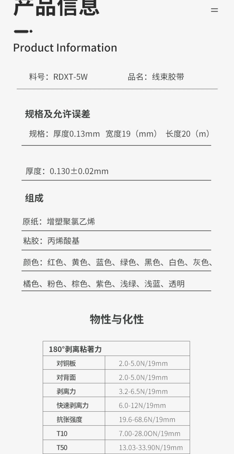 润典信通 线束标识绝缘胶带 RDXT-5W "19mm*0.13mm*20m/卷 单色100卷1箱" RDXT-5W (单位:箱)