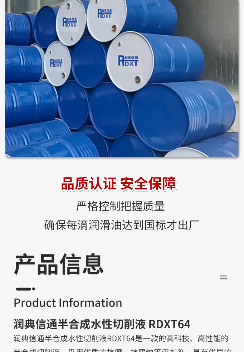 润典信通 半合成水性切削液 RDXT-M64 170kg/桶 RDXT-M64棕色透明 (单位:桶)