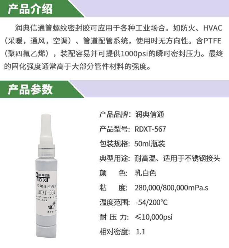 润典信通 RDXT-567 50g/支/10支1盒 管螺纹密封胶 RDXT-567乳白色 (单位:盒)