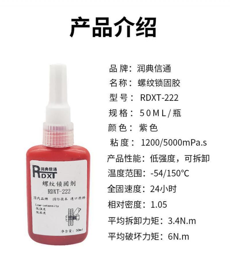 润典信通 RDXT-222 50g/支/10支1盒 螺纹锁固胶 RDXT-222紫色 (单位:盒)