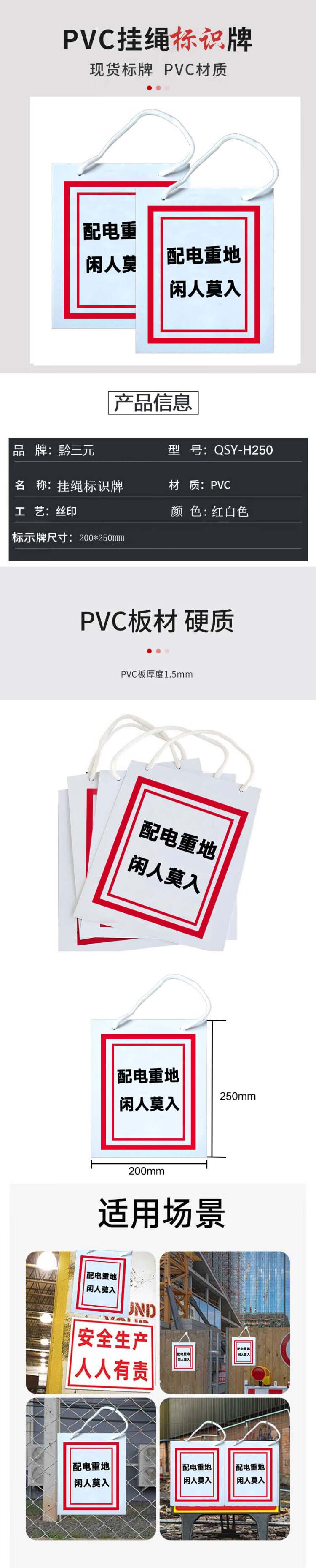 黔三元 QSY-H250 pvc安全挂绳标识牌 200*250mm (单位:张)