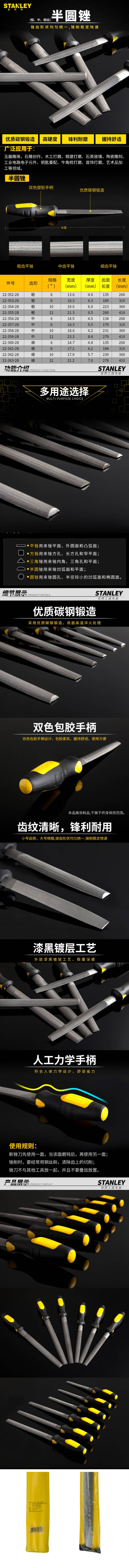史丹利(Stanley) 22-360-28 细齿半圆锉6" (单位:把)
