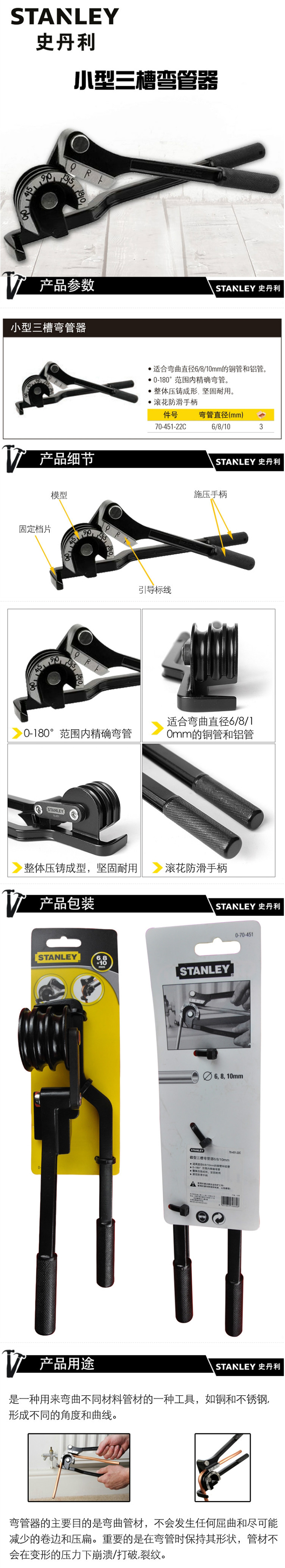 史丹利(Stanley) 70-451-22C 小型三槽弯管器6/8/10mm (单位:个)