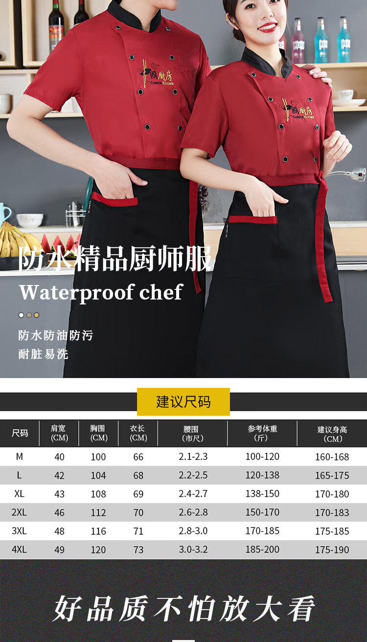 谋福 中国厨房 厨房工作服长袖上衣 3XL (单位:套) 红色