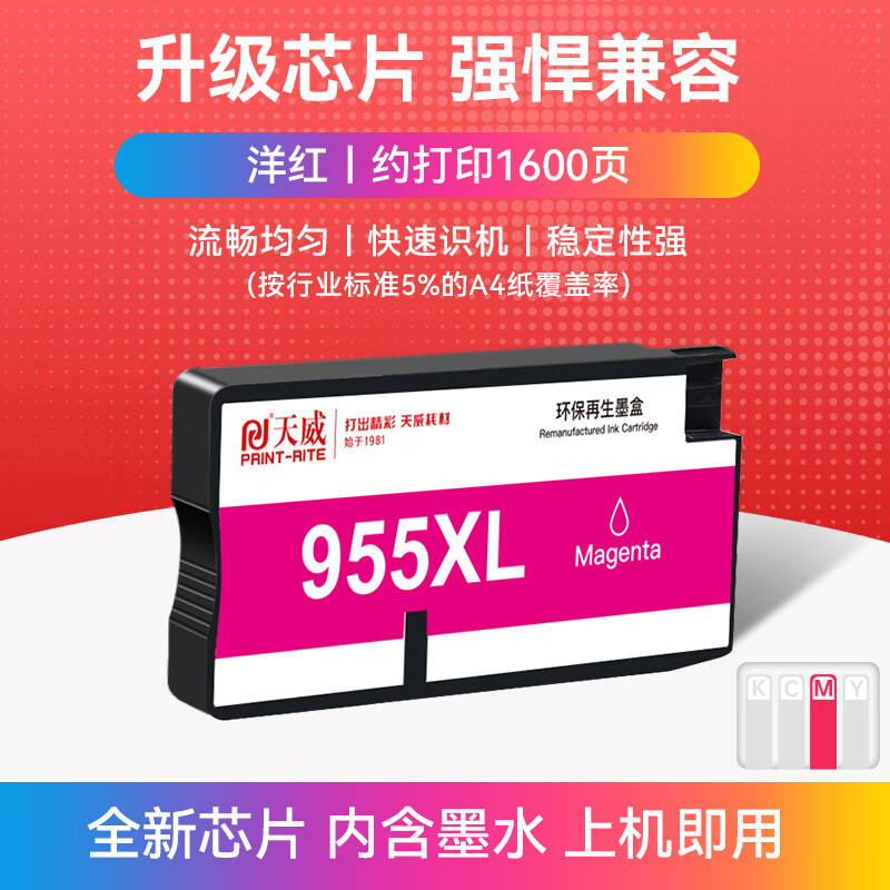 天威 955XL 墨盒 1600页 (单位:个) 适用HP Officejet Pro7720 7730 7740 8710 红色