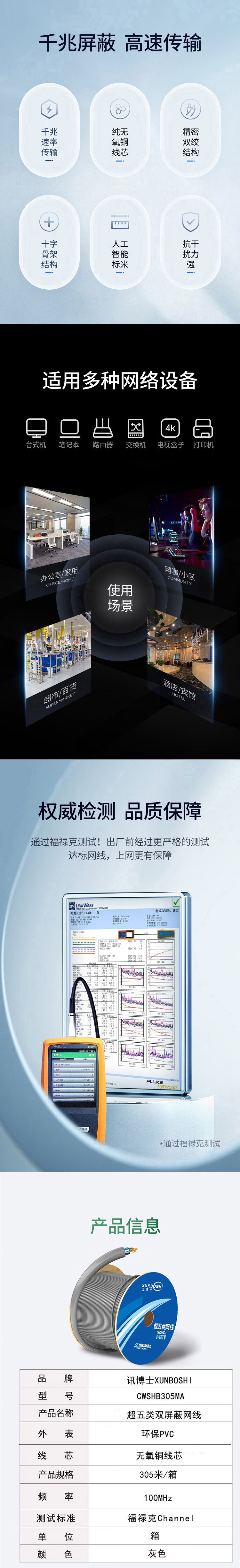 讯博士 CWSHB305MA 超五类双屏蔽网线 305米/箱 (单位:箱) 灰色