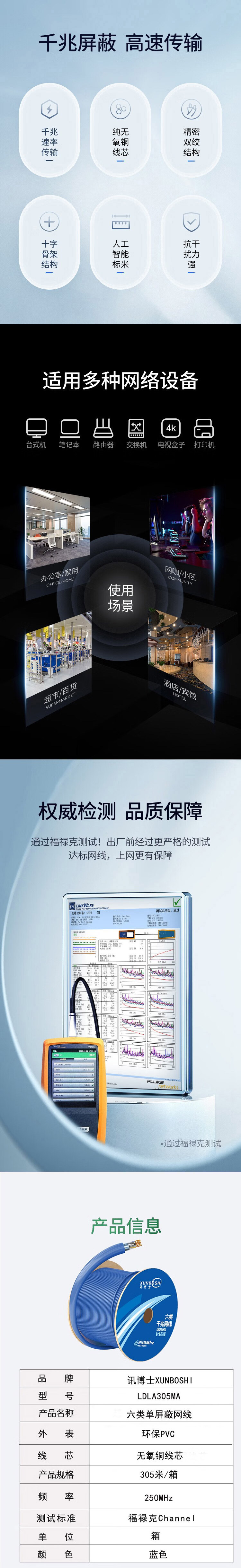 讯博士 LDLA305MA 六类单屏蔽网线 305米/箱 (单位:箱) 蓝色