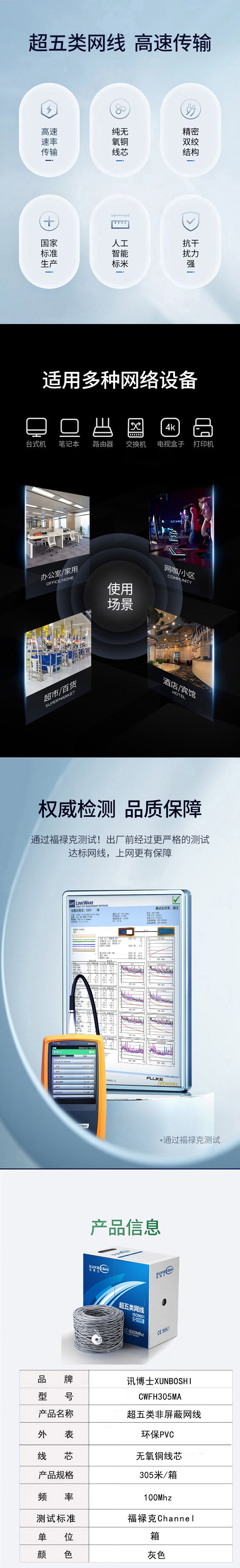 讯博士 CWFH305MA 超五类非屏蔽网线 305米/箱 (单位:箱) 灰色