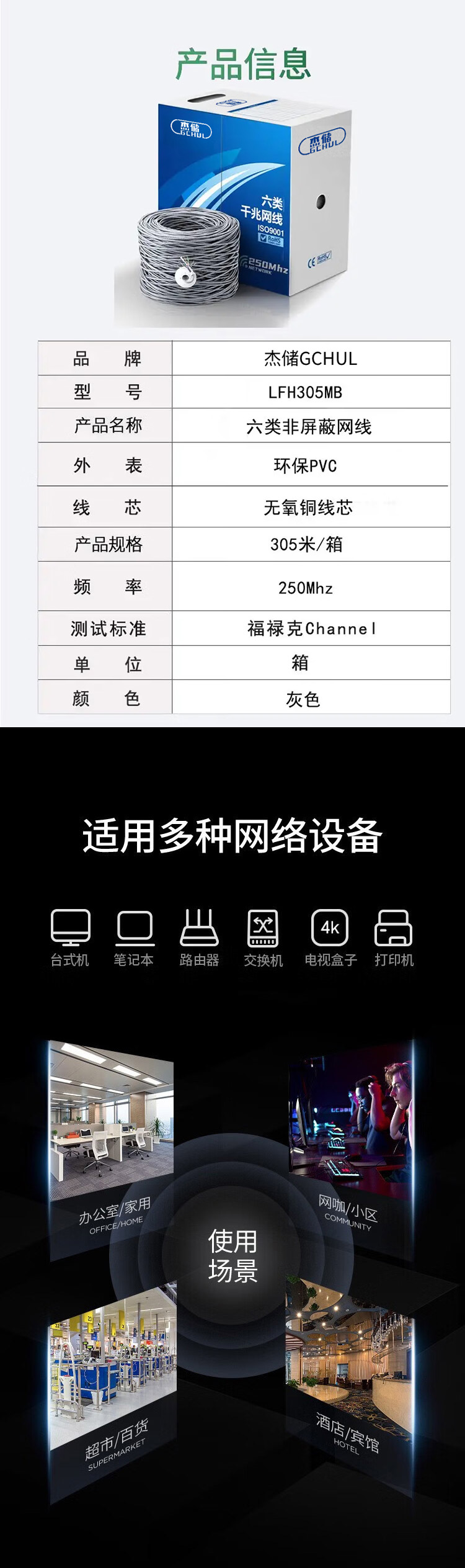 杰储(GCHUL) LFH305MB 六类非屏蔽网线 305米/箱 (单位:箱)