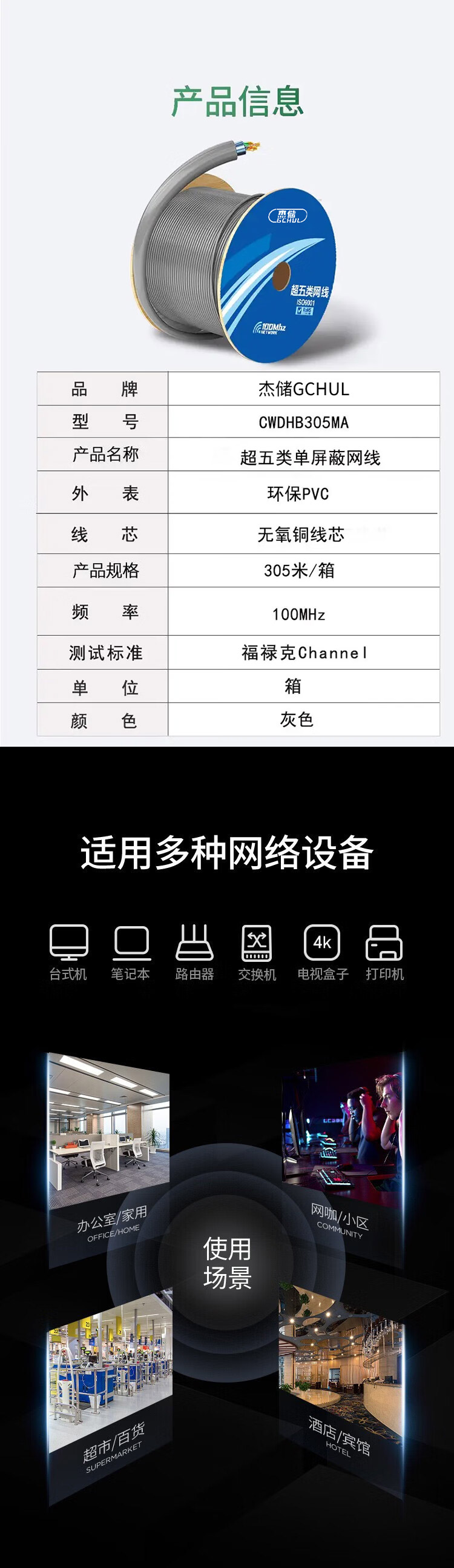 杰储(GCHUL) CWDHB305MA 超五类单屏蔽网线 305米/箱 (单位:箱)