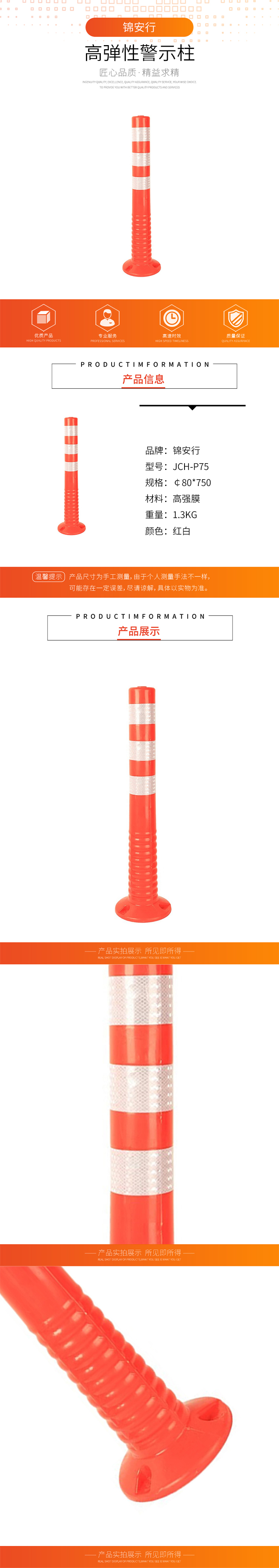 锦安行 JCH-P75 高弹性警示柱 ¢80*750 (单位:根) 红白
