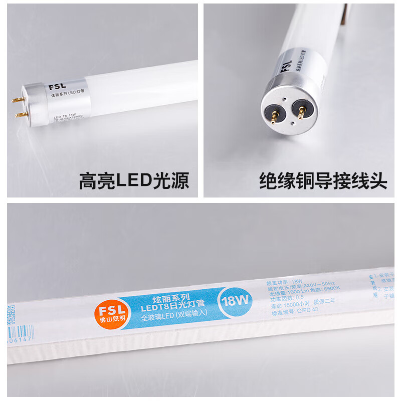 佛山照明(FSL) 炫丽系列 双端标准日光灯管 1.2米 T8 220V 18W 30K (单位:根)