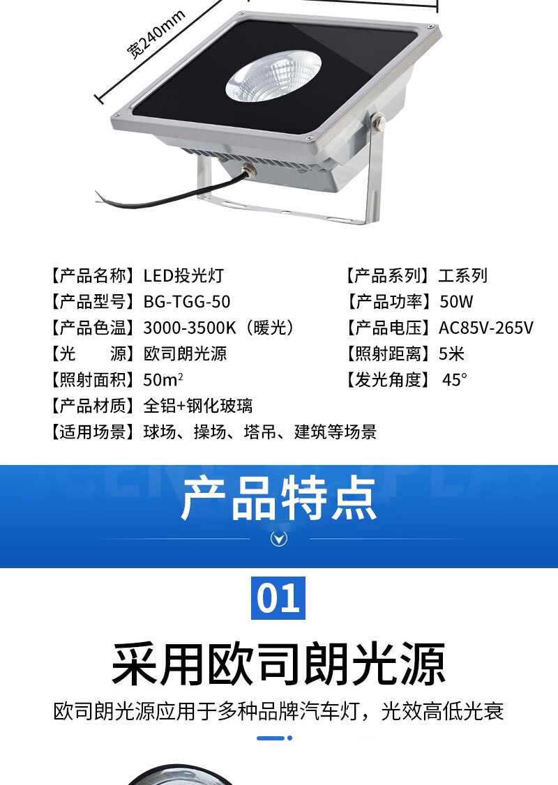 贝工 BG-TGG-400 工系列LED投光灯 400W (单位:个) 白光
