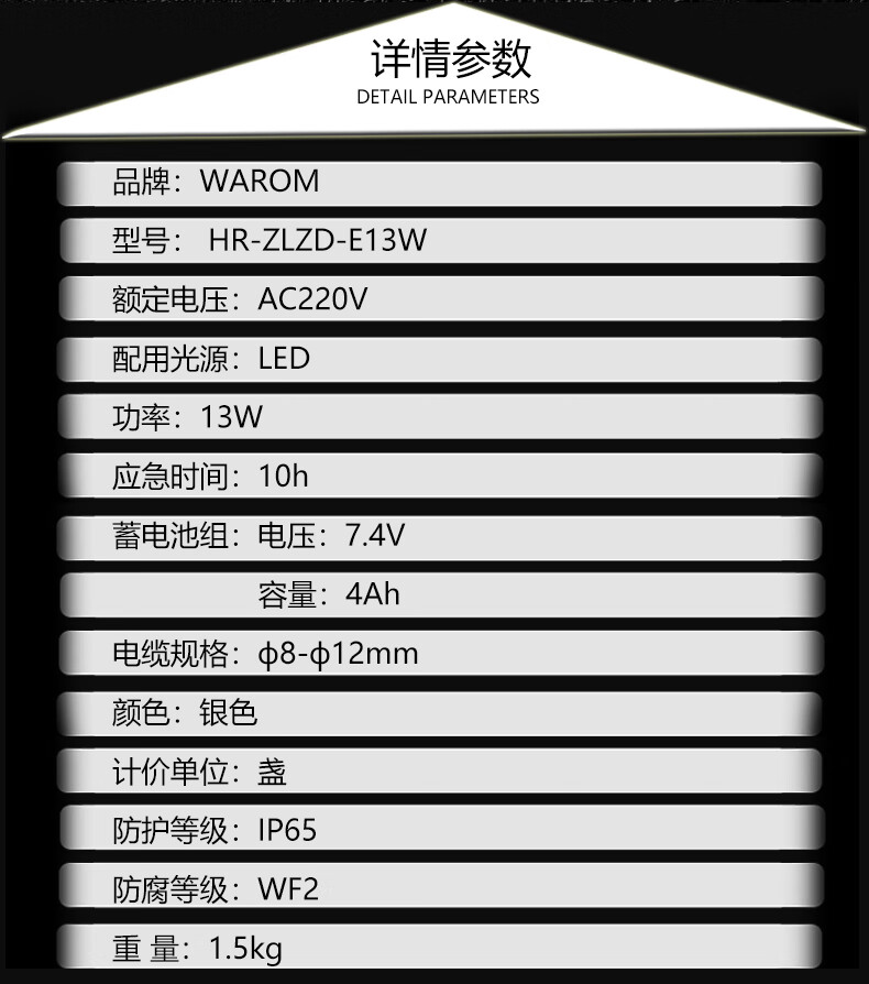 华荣(WAROM) HR-ZLZD-E13W(Ⅱ)-6 消防应急照明灯具 13W IP65 (单位:个)
