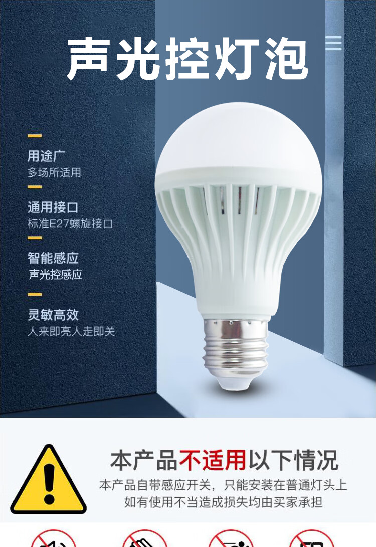 贝工 BG-SQP03W LED声光控灯泡 E27 3W (单位:个) 暖光
