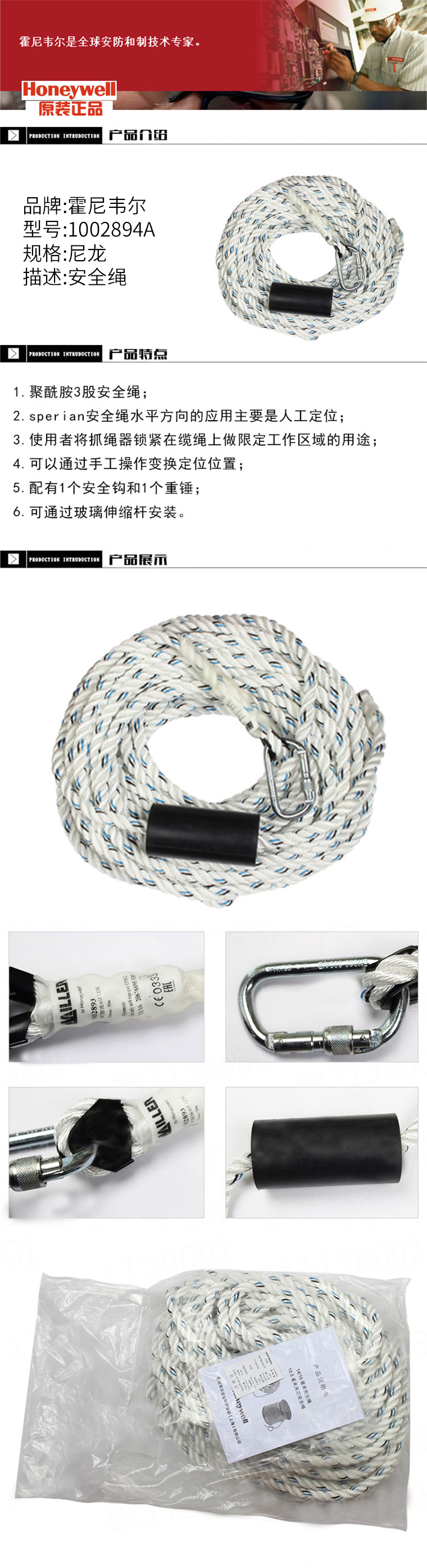 霍尼韦尔(Honeywell) 1002894A 尼龙安全绳 (单位:根)